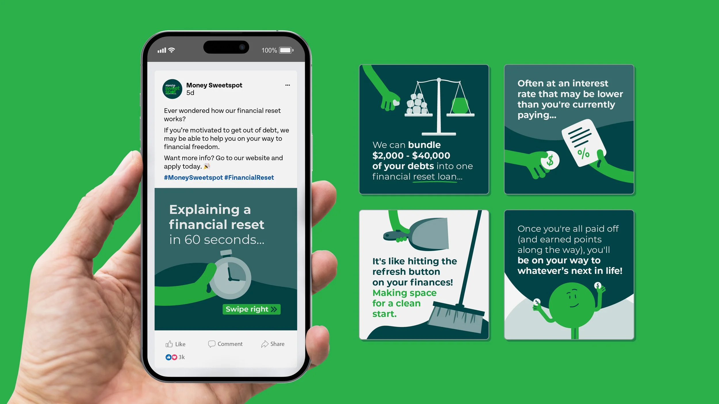 We also work with smaller and socially-led financial services companies like Money Sweetspot and Community Finance.