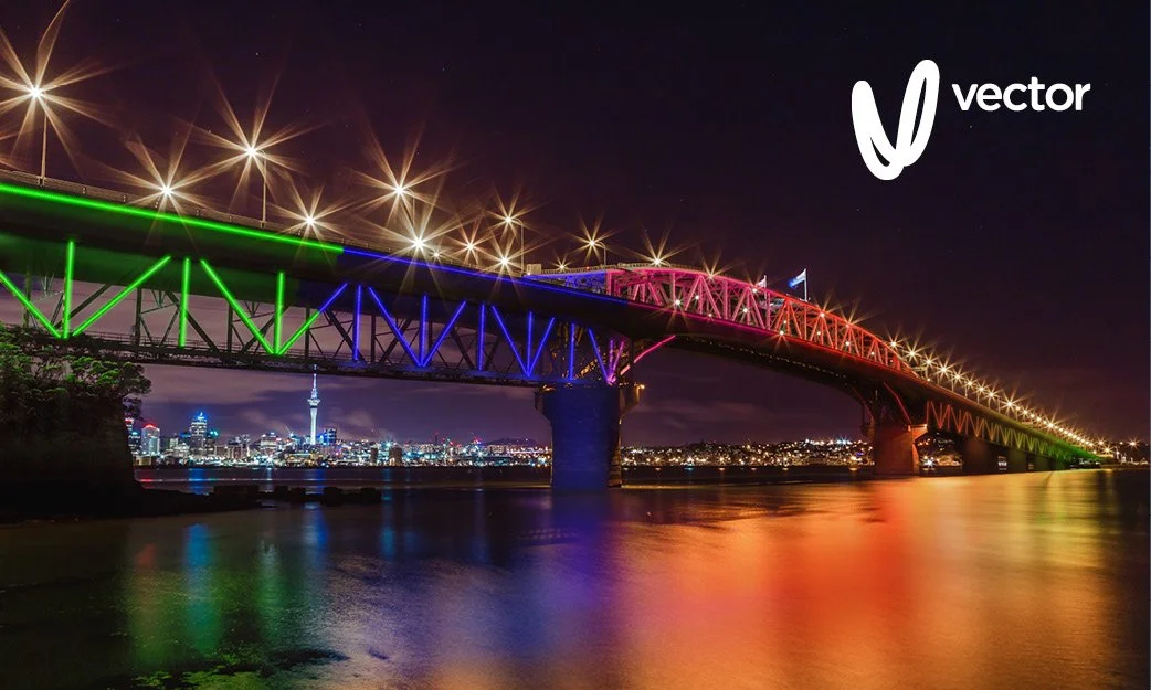For Vector, New Zealand's biggest electricity lines company, we designed a completely new logo and identity, then applied it from everything to Vector's website to its car park signage. We also worked on the company's social media presence, internal campaigns with people and culture, customer acquisition campaigns for solar electricity and Tesla Powerwall, storm management and materials development, a public relations / media influencer event for the launch of Vector Lights and much more.